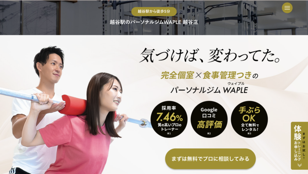 WAPLE 越谷店の体験談・評判|トレーナー情報や料金システム
